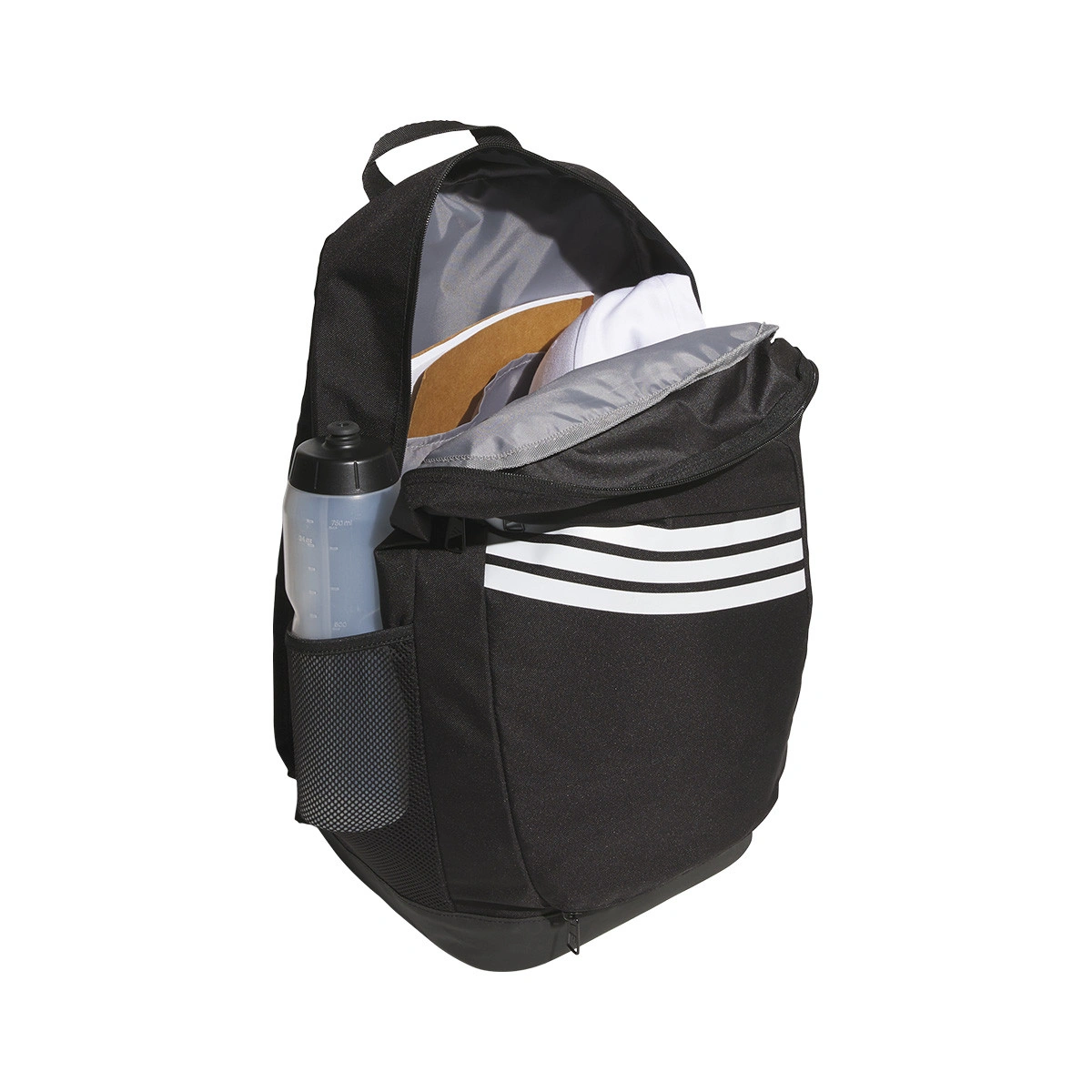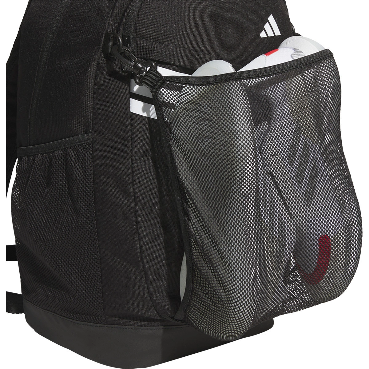 Er verfügt über mehrere verschiedene Fächer, sodass du Platz hast, um deine Ausrüstung und andere wichtige Dinge wie Wasserflaschen zu verstauen. Auf der Vorderseite befindet sich eine große Mesh-Tasche, die sogar einen Basketball der Größe Sieben aufnehmen kann. Das Airmesh am Rückenpanel und unter den Trägern sorgt für Luftzirkulation und garantiert dir Komfort auch bei längeren Wegen.