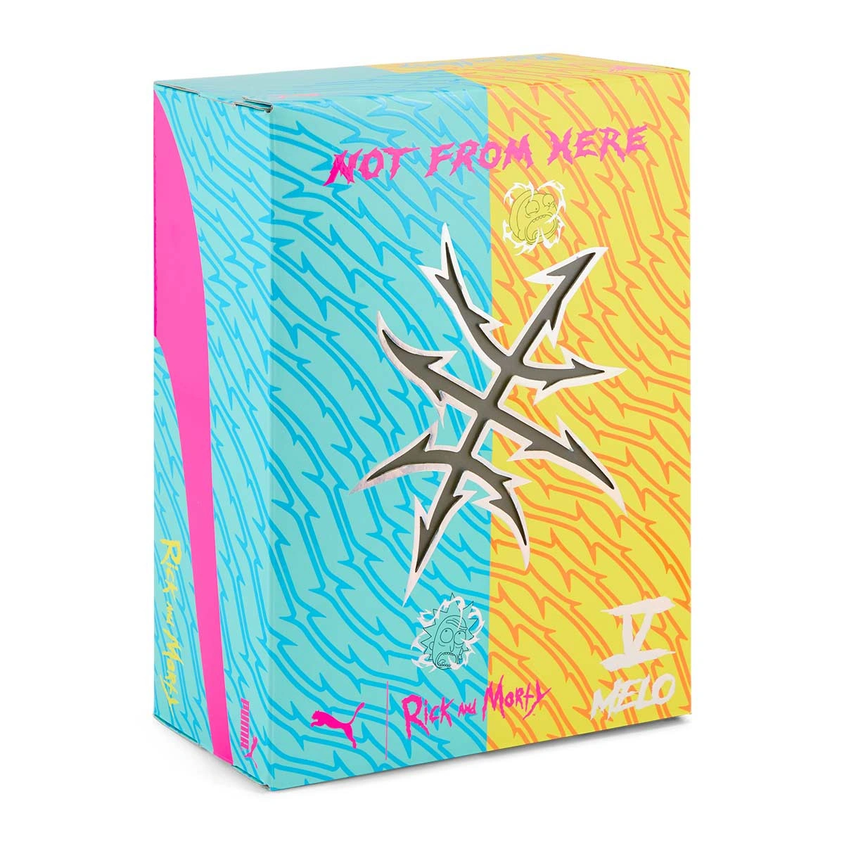 Melo's favorite animated duo returns in a completely out-of-this-world collaboration: PUMA x Rick and Morty, where the MB.05 takes on a fully interdimensional touch through an asymmetric design that captures the overflowing essence of the scientist and his inseparable companion: Rick appears in aquamarine blue tones with mint accents, while Morty stands out in a vibrant mix of oranges and yellows. This version of Melo's boldest model yet is designed to win over fans from every corner of the universe. The extreme and mismatched colors embody the duo's delirious duality, while the distorted graphics, portal-like details, and irreverent phrases evoke interdimensional journeys, failed experiments, and the series' signature chaotic humor, making every design element feel straight out of a psychedelic Rick and Morty adventure.
