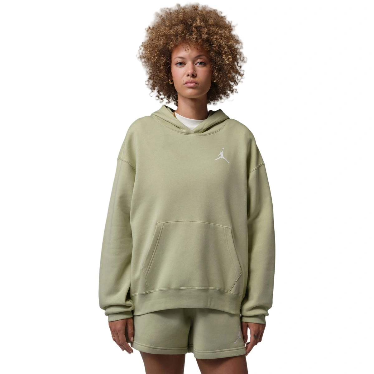 Fancy a warmer touch? Get this Jordan Fleece Pullover for women. The medium-density Fleece fabric is smooth on the outside and softly brushed on the inside for a relaxed, cosy, and pleasant feel.