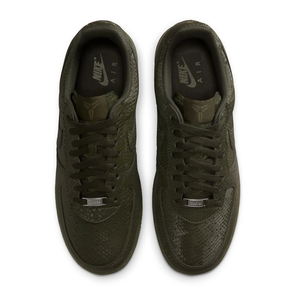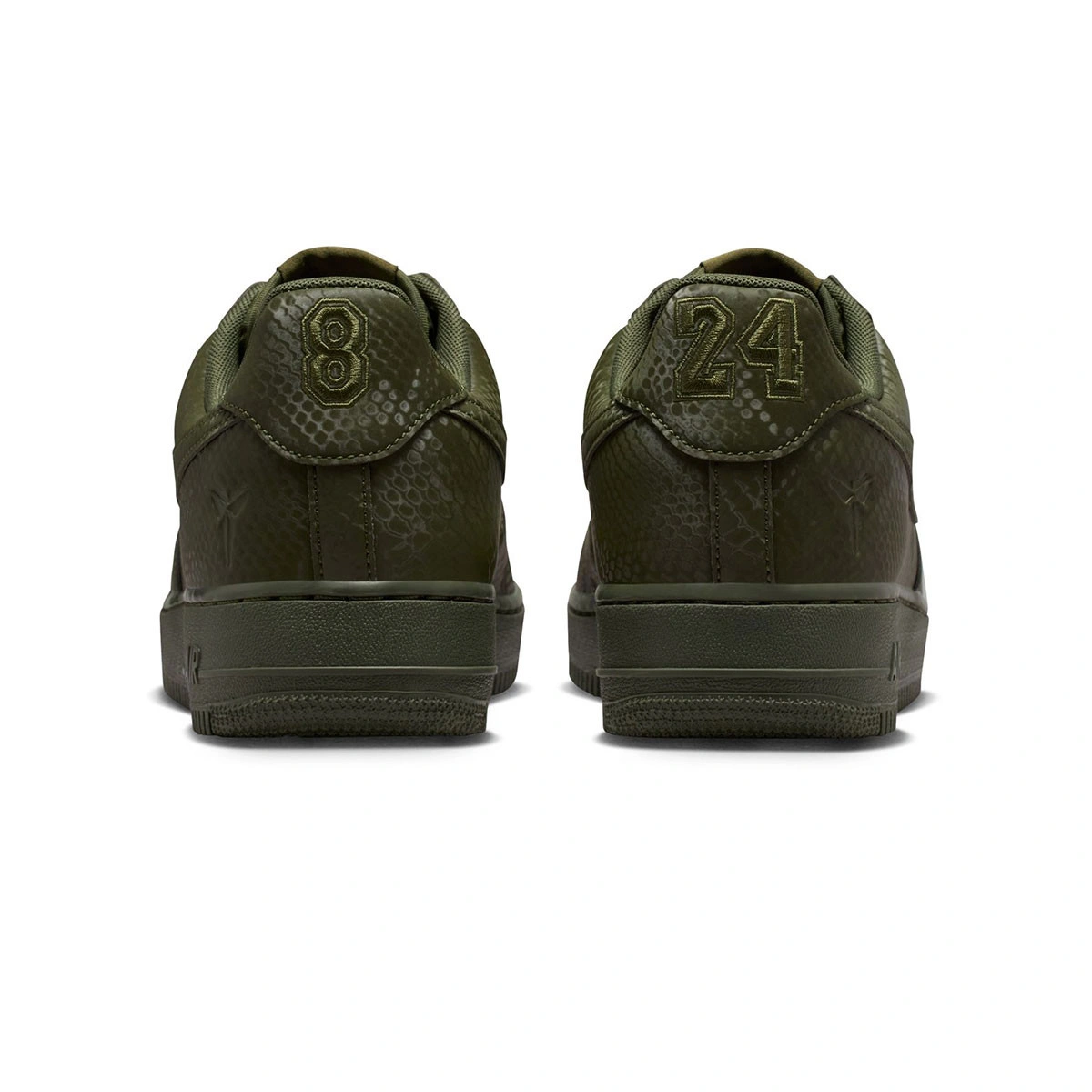 These special edition Air Force 1s are infused with Mamba DNA, seen in the snakeskin print throughout the shoe, adding a distinctive touch to an all-time classic. The embroidered 8 and 24 numbers on the heel pay homage to Kobe's retired jersey numbers, while the Sheath logos on the tongue and outer heel add an exclusive touch. These Kobe Air Force 1s continue the player's legacy with special ‘Mamba Forever’ tags on the laces.