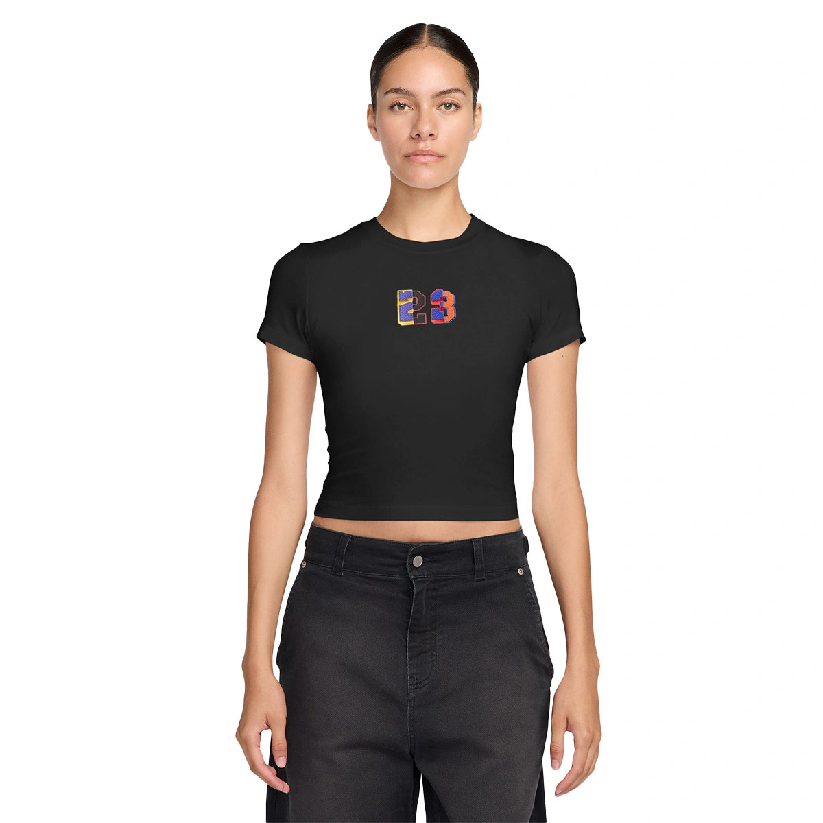 Como tributo a los equipos más legendarios del baloncesto vistos a través del legado de Jordan, esta camiseta para mujer presenta el emblemático número 23 bordado en el centro del frontal. Su diseño ligeramente cropped y su tejido elástico ofrecen un ajuste entallado y confortable.