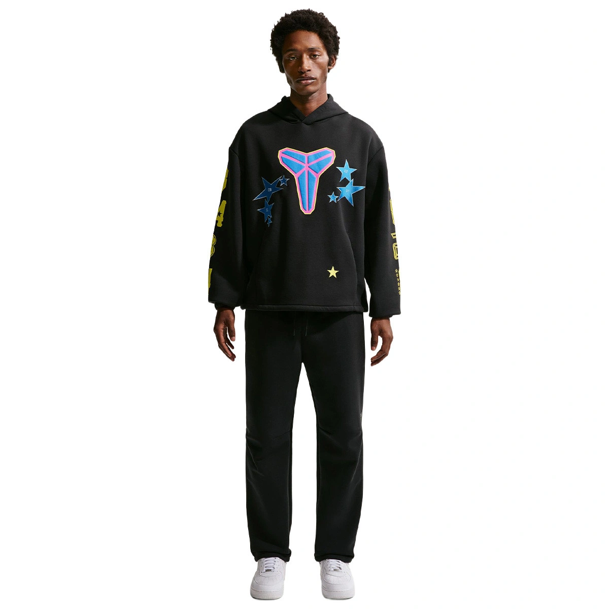 Con su colorido esquema de tonos negro, amarillo sónico y azul fotográfico claro, esta prenda no solo rinde homenaje al legendario Kobe Bryant, sino que también es una audaz declaración de estilo contemporáneo.