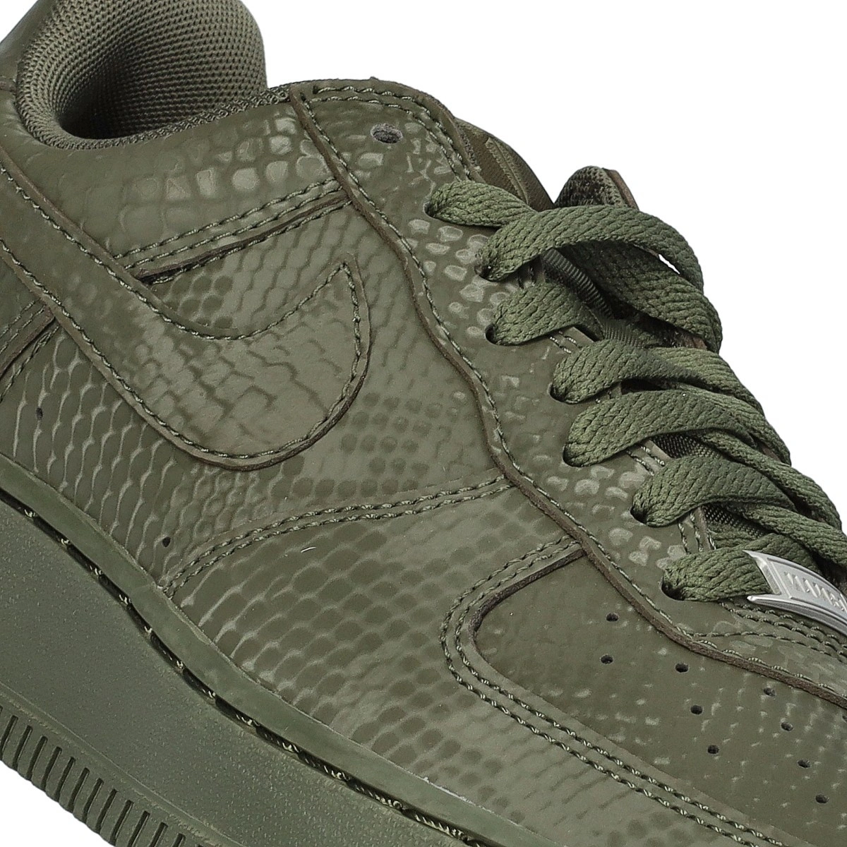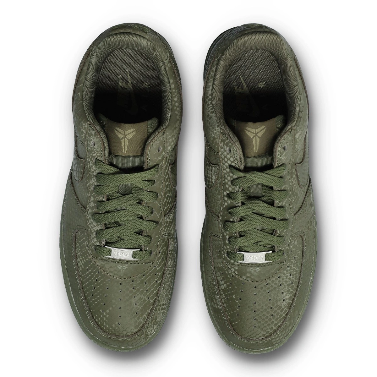Estas Air Force 1 de edición especial están impregnadas del ADN de Mamba, que se ve en el estampado de piel de serpiente por toda la zapatilla, para aportar un toque distintivo a un clásico de siempre. Los números "8" y "24" bordados en el talón rinden homenaje a los números de camiseta retirados de Kobe, al tiempo que los logotipos Sheath en la lengüeta y la parte exterior del talón añaden un toque exclusivo. Estas Kobe Air Force 1 continúan el legado del jugador con chapas "Mamba Forever" especiales en los cordones.