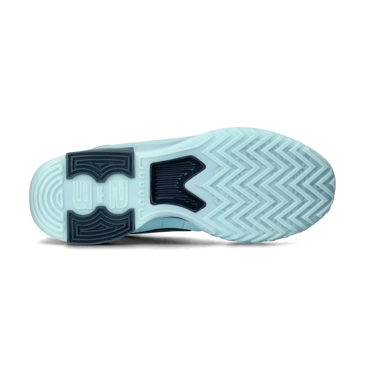 La suela exterior está confeccionada con un compuesto de goma que ofrece una sujeción óptima para los movimientos laterales, tanto en cancha cubierta como al aire libre. Ocupa desde la puntera hasta alrededor del talón para mejorar la durabilidad.