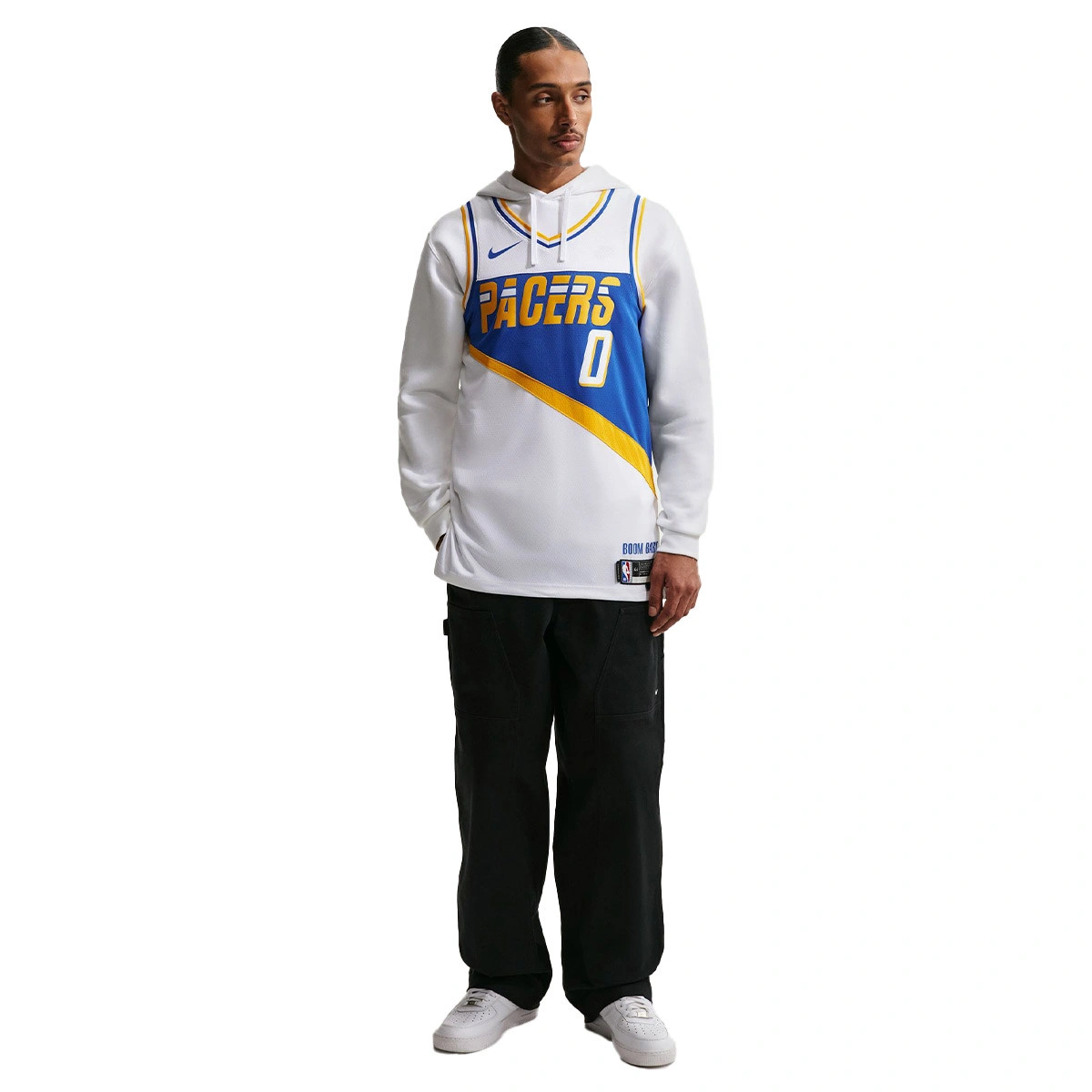 Le maillot Tyrese Haliburton City Edition 2025-26 des Indiana Pacers est une réinterprétation des tenues préférées des fans, réinventées en blanc et bleu marine pour refléter une nouvelle ère du basket des Pacers. Inspiré par les styles iconiques des années 70, 80 et 90, le design de cette année unit les générations, reliant les légendes qui ont posé les bases aux stars qui forgent leur avenir. C'est plus qu'un uniforme : c'est un hommage aux moments qui définissent la franchise et ses supporters, et il est confectionné avec fierté et passion. Parce qu'Indiana a toujours été bien plus que du basket. Il s'agit des moments qui perdurent dans le temps.
