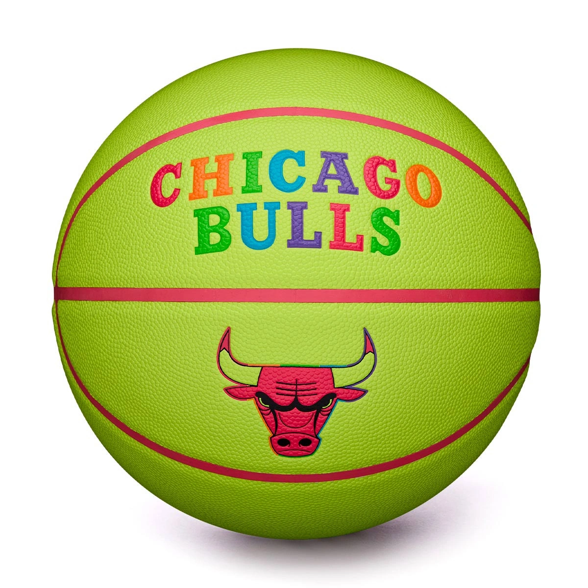 NBA Team Neon Chicago Bulls Ball from Wilson, a ball that screams style and quality. Equip basketball lovers with advanced construction technology that ensures stable and precise flight. The ball's surface, with its textured finish, not only provides excellent grip and control in every play, but is also highly resistant to wear, guaranteeing durability even on the most demanding courts.